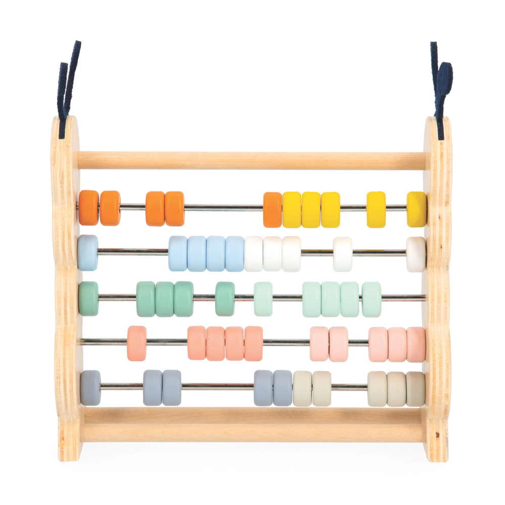 Indicado a partir de 18 meses, ele acompanha o crescimento. No início, o bebê move as peças de um lado para o outro. Assim, descobre as cores. São 10 cores diferentes. Entre elas, estão laranja, rosa, azul e verde.