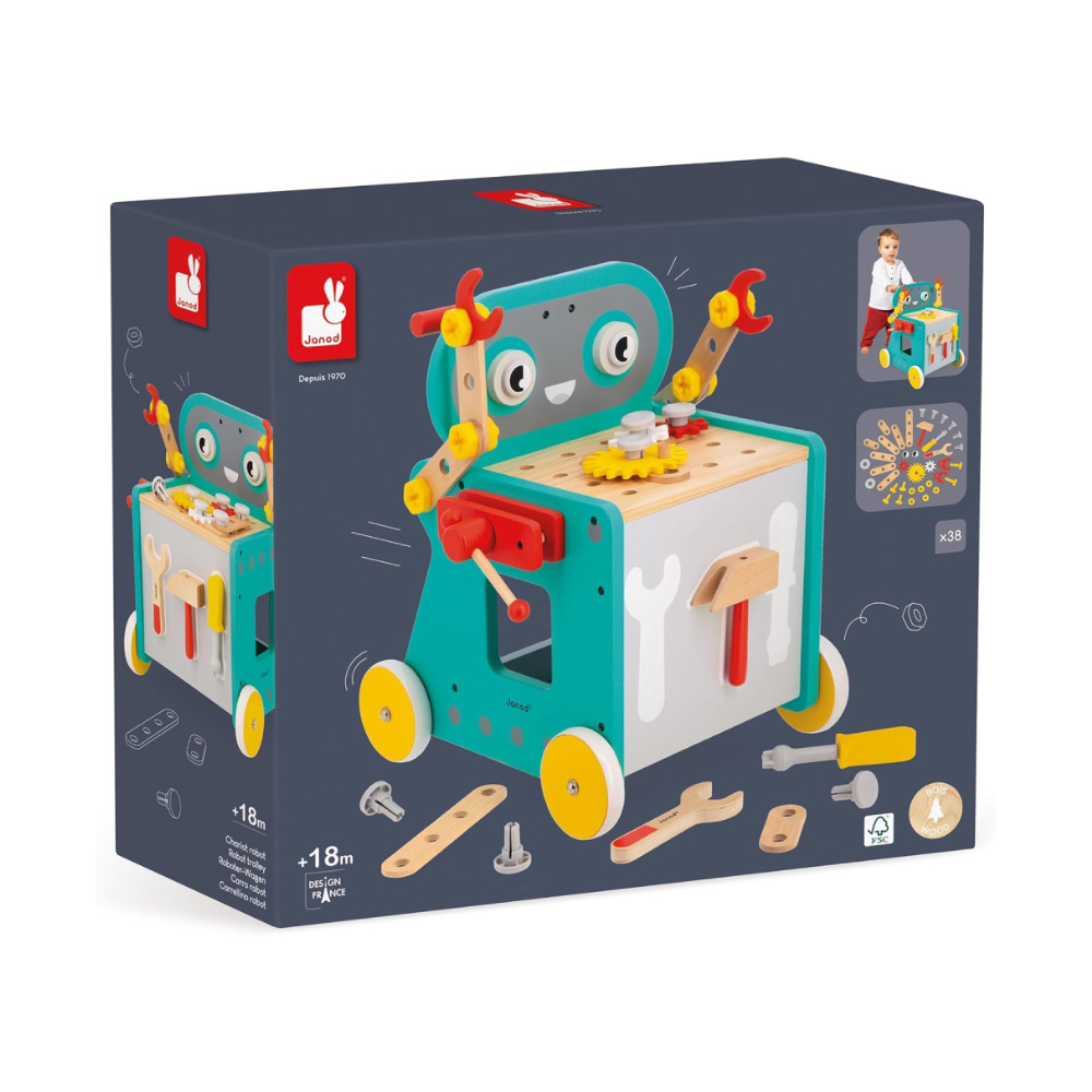 Diga “olá” ao robô de atividades! Indicado a partir de 18 meses. Além disso, diverte.