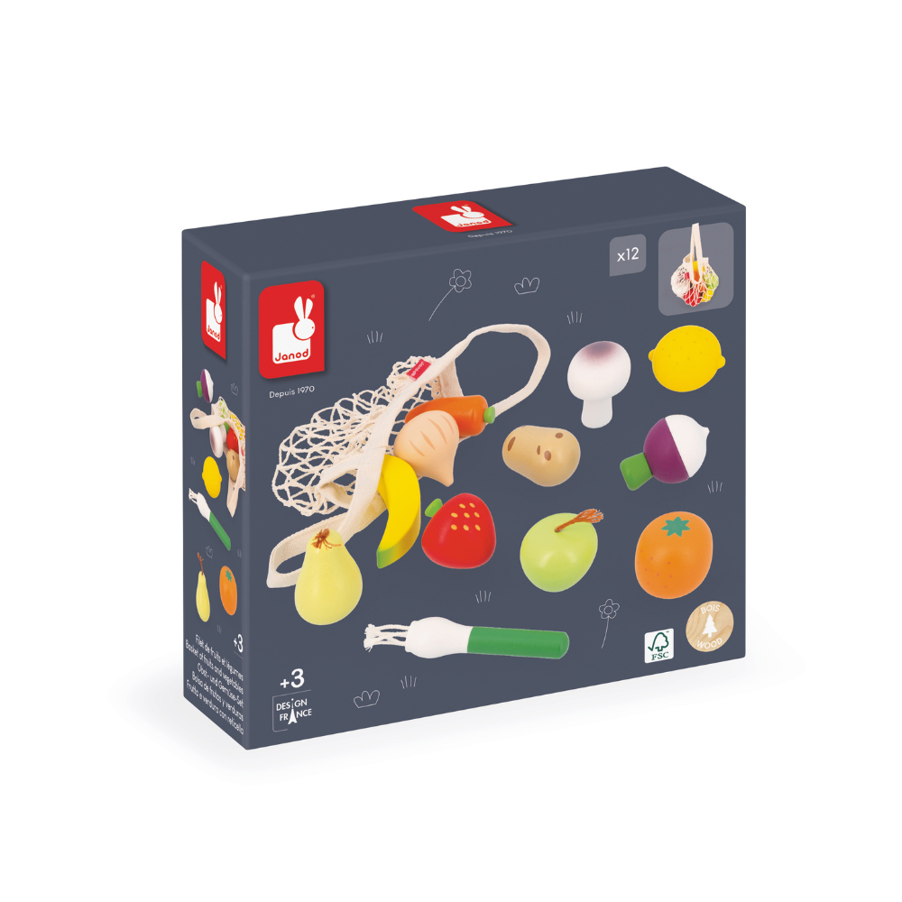 Na casa da vovó, a feira é importante. Então, é hora de encher a cozinha. Este conjunto de frutas e verduras encanta. Indicado a partir de 3 anos. Além disso, completa a brincadeira.