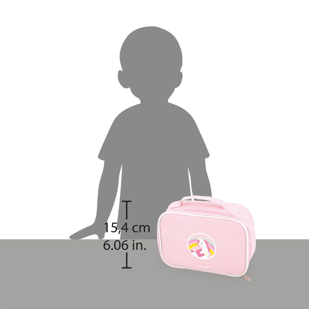 Todos os itens cabem na necessaire. Ela tem zíper e é fácil de usar. Assim, a criança guarda e leva para onde quiser.